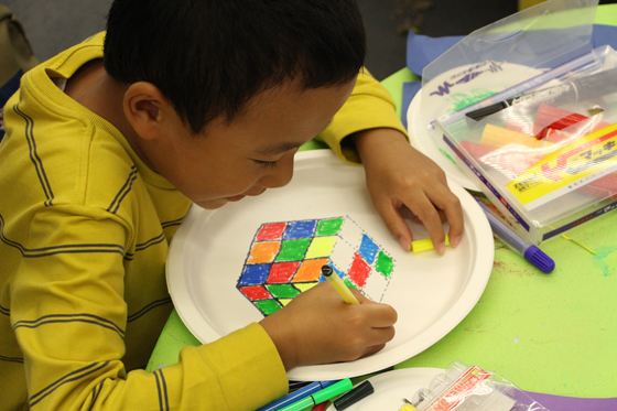 小朋友在绘制魔方