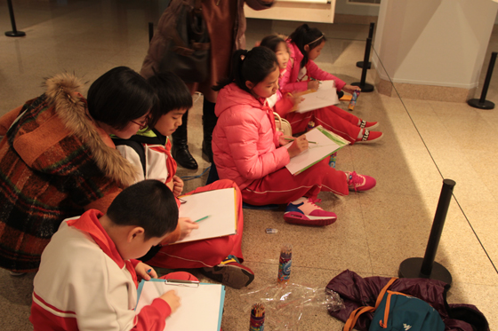 学生们在展厅完成中国美术馆为他们精心设计的学习单