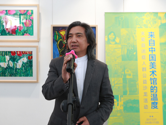 刘洋主任代表市残联对能够参加今天活动的各位专家学者表示感谢,特别对中国美术馆能够开辟一方空间来展览孤独症孩子的作品表示感谢。他表示,再过两天就是“世界自闭症日”。在此之际举办这样的活动很有意义,体现出社会各界对孤独症群体特殊的关爱。这里展现的7位孤独症孩子的作品,都反映了孤独症孩子对生活的热爱,对世界的热爱,每一幅简单的作品背后都凝聚着每个孩子艰辛的心路历程,也凝聚着家长和指导老师的努力与心血,希望每一个孩子都能健康成长,希望社会各界继续关怀和帮助孤独症孩子,希望大家记住这里的每一幅画。