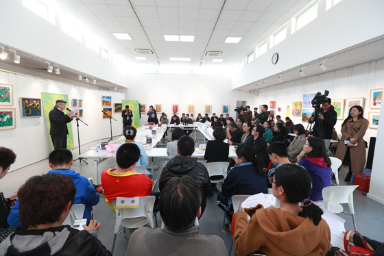 吴为山馆长代表中国美术馆感谢老师和同学们的到来,他说:“在中国美术馆的公共教育空间与同学们共绘美丽的蓝天,温暖的春天,这是大家敞开胸怀的表现。任何人都有各自的特点,有时候可能是障碍,但这不可怕,只要我们有一颗爱心,爱的温度可以把一切融化,可以把封闭的门打开,这就是我们举办这个活动的意义所在。”吴为山馆长表示,中国美术馆是唯一的国家级美术馆,也是中国美术的最高殿堂,肩负着传承优秀传统文化,弘扬当代艺术创作的责任,他说:“通过我们共同的努力,让美洒满人间,让美感染时代,让美在每个人的心灵中升华,变成美的能量,变成爱的能量,让整个生活充满阳光。”