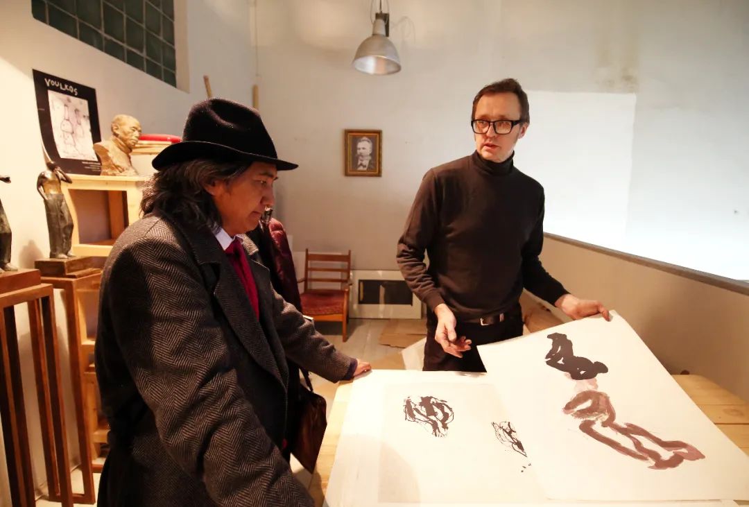 2016年11月,中国美术馆馆长吴为山与白俄罗斯雕塑家协会副主席、雕塑家康斯坦丁•谢利哈诺夫先生在其工作室会面。