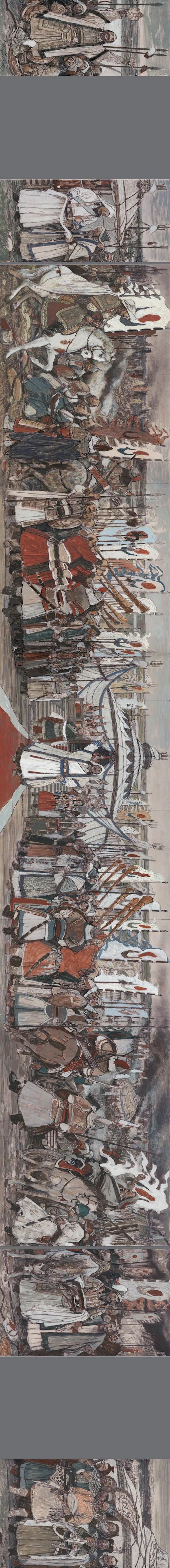 通过立意、构思、酝酿形成腹稿,继而画出来,即所谓的草图。这便是一件创作的初始呈现,也许不成熟,但这凝聚了作者最原始的创作冲动,往往是最为真实的内心流露,也是艺术形式最早的雏形。经常听作者介绍一件创作时说:“数易其稿。”这“易”的过程就是去粗取精、去伪存真的修炼;是创作者创造思维的心路历程;是创作者将客观形态转化为形式的过程;是艺术语言的锤炼!这里容纳了无数的信息,肯定、否定、再肯定、再否定,矛盾的对立与统一,从简单到复杂,再回到单纯,进而纯粹……所以说草图的价值不仅在于为正稿做基础工作,还有研究价值、文献价值、史料价值,尤其是对创作心理的研究有着十分重要的意义。故草图虽为草图,但也有其独特的审美价值。在图像学研究的层面上,我们可以用透视比例的原理来审视艺术家在表现空间时视角与方法,也可以从若干根辅助的“草线”中了解艺术家在创作时将各种事物关联时的逻辑思维的能力。常常,我们会在看各种草图时带着好奇,因为,从这之中可以探究完成稿的秘密,更可以更为深刻地理解完成稿的深刻性。本次展览邀请了当代一些优秀的艺术家提供了他们部分作品的草图,有不少作品已是家喻户晓的名作,但草图却是第一次披露出来。我们可以从一张作品的多幅草图中看到、感悟到艺术家们在创作时没有负担的自由造型和自由表现。这种难得的放松正是艺术创作时进入无我状态的“自在”,在这“自在”状态下的表现,往往令人十分感动,因为它的最重要之处在于“真”。没有装腔作势、没有矫揉造作,在笔触与色彩的表现中充满自由自在、洋溢着生命的感悟。有些作品是国家重大题材的美术作品草图,在草图与成稿的比较中,我们不难发现草图常常予人们以咫尺千里之感。其原因乃在于作者在短时间内完成了构想,一挥而就的出发点是“意”。不为形所囿,不为形式所束缚,更不为既成的表现方式所困扰。从这意义上讲,草图是观摩成品的一面镜子。这“镜子”里可看到更多的晃影,充满想象与神奇。本次展览所邀请的作者都是当代卓有成就的艺术家。在防疫的特殊情况下,他们积极支持中国美术馆的工作,精选出自己代表性草图参加展览,使我们看到了“大作”背后的故事。我要特别感谢执行策展人张峻明先生,热情、诚恳帮助组织了许多艺术家,并在学术理念、展览思路等方面贡献智慧。100×150cm 1972——1973年 中国美术馆藏