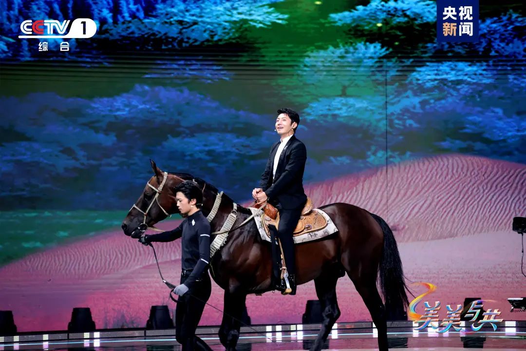 本期《美美与共》节目还迎来了一匹汗血宝马“金樽”,汗血宝马是中国人对于中亚国家土库曼斯坦国宝——阿哈尔捷金马的称呼。汗血宝马在中国文化中有着重要地位,从《三国演义》中身如火炭、状甚雄伟的赤兔马,到汉墓出土的铜奔马,再到宋朝画家李公麟《五马图》中的照夜白等都是以汗血宝马为原型创作的。观众们通过节目不仅能一睹“马中颜值王”的风采,还能看到主持人撒贝宁化身“骑手”,解锁了一次骑汗血宝马上班的体验。土库曼斯坦驻华大使帕拉哈特·杜尔德耶夫现场讲述:“在土库曼斯坦有个说法,我们不把这匹宝马叫做马,我们要把这匹宝马称为自己的兄弟。”汗血宝马三次作为国礼赠与我国,从土库曼斯坦到中国,汗血宝马跨越千年,踏过万水千山,早已牢牢地将中国与土库曼斯坦连在一起。