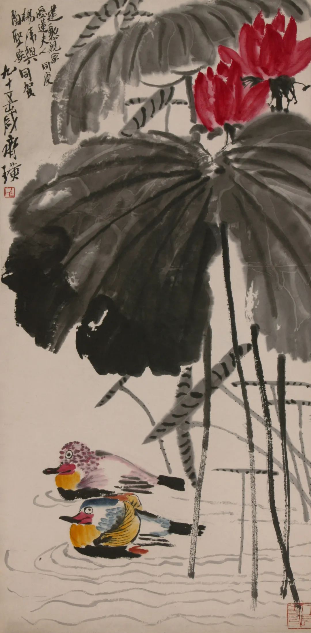 齐白石 荷花鸳鸯 1955年